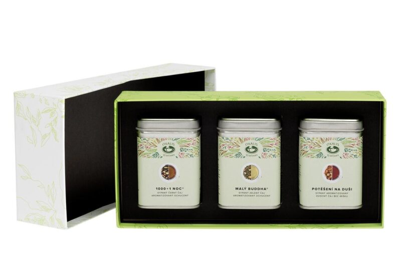 Rinkinyje yra trys skirtingos arbatos: Soul Pleasure (40 g), Little Buddha (30 g) ir 1000+1 Night (30 g).