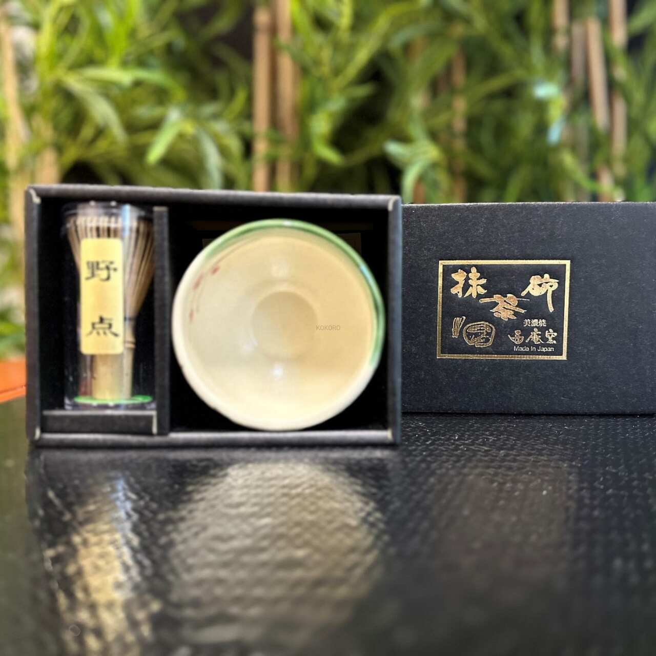 Atraskite japoniškos arbatos ceremonijos grožį su išskirtiniu matcha paruošimo rinkiniu, kurį sudaro rankomis dekoruota Chawan dubenėlė su slyvų žiedų (ume) motyvu bei mažesnė bambukinė Chasen šluotelė matcha plakimui. Šie preciziškai pagaminti aksesuarai supakuoti į elegantišką juodą dėžutę – puiki dovana matcha mėgėjams ir japoniškos estetikos gerbėjams.