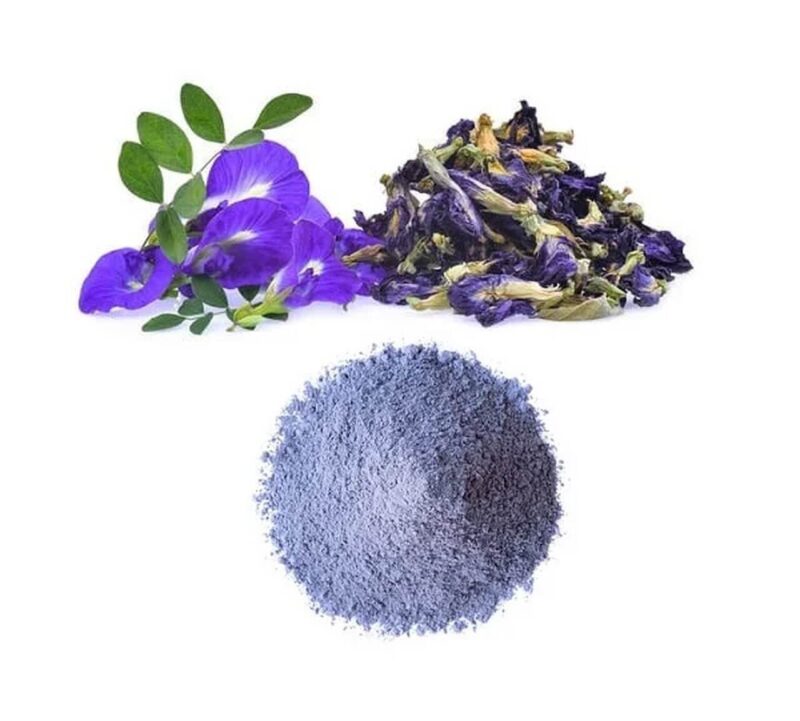 100 % mėlynųjų balnapupių (Clitoria ternatea) žiedų milteliai.