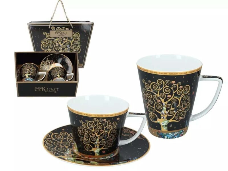 Šis elegantiškas porceliano puodelių komplektas, dekoruotas vienu garsiausių Gustavo Klimto kūrinių „Gyvybės medis“, – tai daugiau nei indai. Tai simbolis – amžinybės, augimo ir gyvybės ciklo, kurį galima kasdien laikyti rankose.