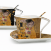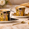 Porcelianinių puodelių rinkinys su lėkštutėmis ir šaukšteliais – įkvėptas G. Klimto kūrybos