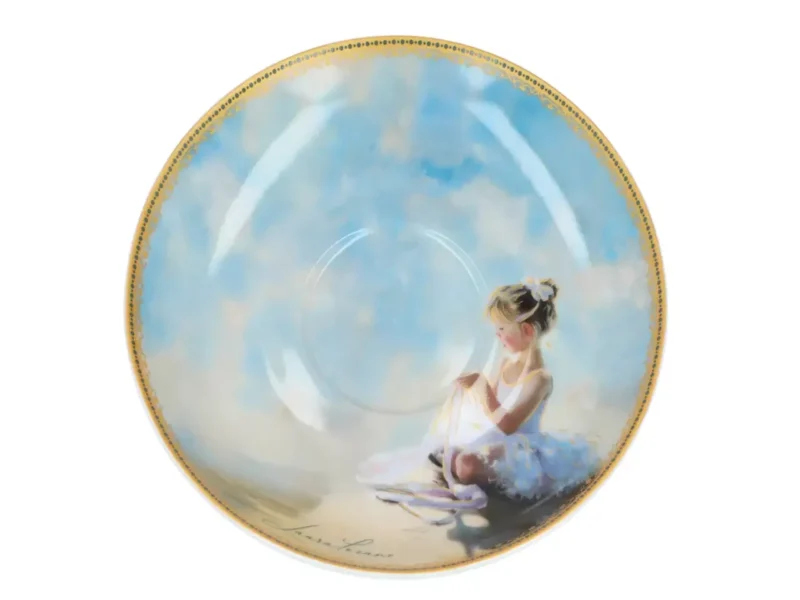 Švelnumas, grakštumas ir elegancija – tai trys žodžiai, apibūdinantys porcelianinį puodelį su lėkštute „Mažosios balerinos“, sukurtą pagal garsaus ispanų menininko L. Lozano kūrybą.