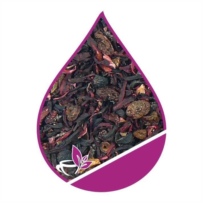 🌿 Kinrožių žiedai – suteikia arbatai sodrią rubino spalvą ir lengvą rūgštelę.