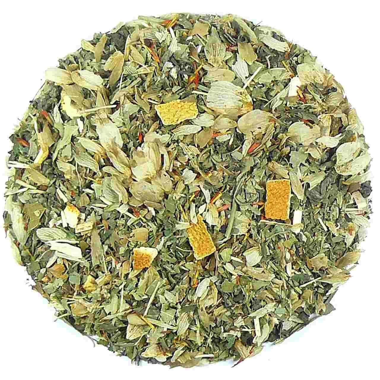 Ramunėlių žiedai, liepų žiedai, pipirmėčių lapai, levandų žiedai, saldymedžio šaknys.